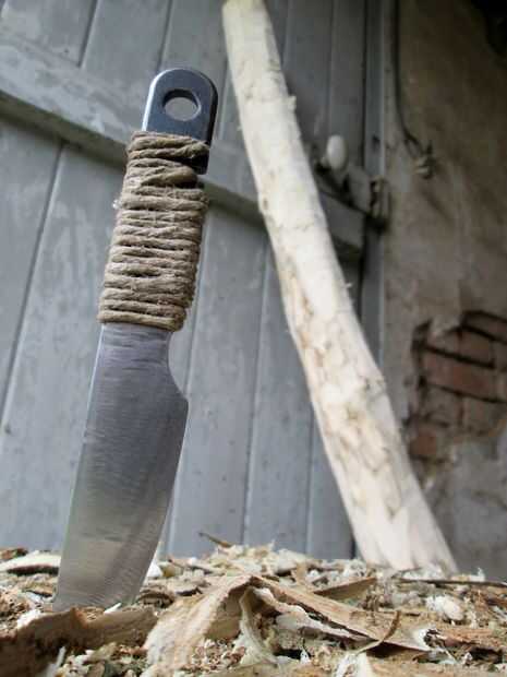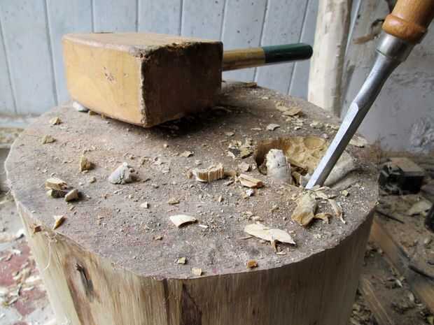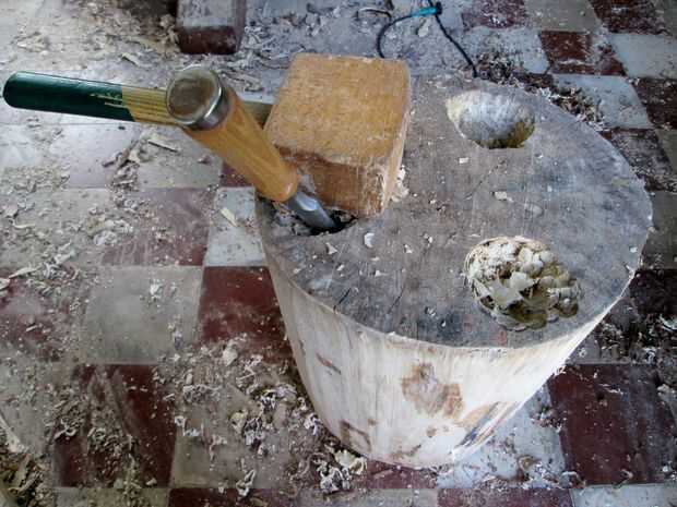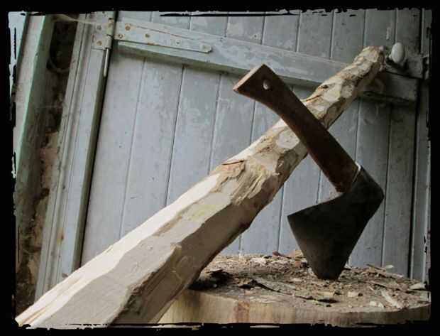 Usar hacha y cuchillo de pelar la corteza y para obtener la superficie lisa y agradable.