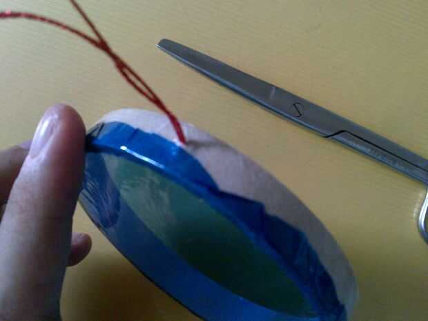 Utilice una punta (yo usé mis tijeras) para levantar y pegar el plástico a la que acaba de aplicar la cinta adhesiva