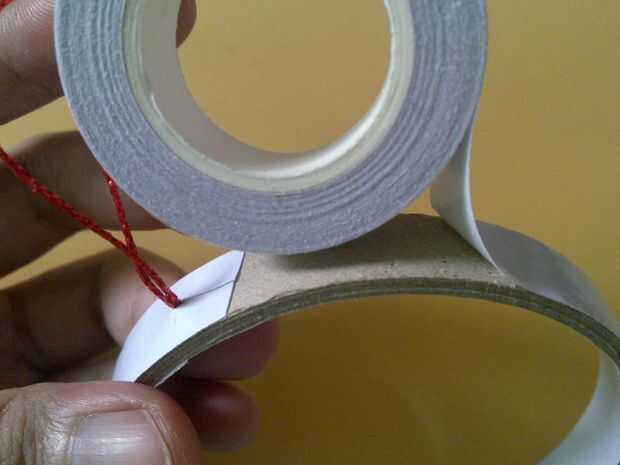 2. Haz una pequeña ranura en un extremo de la cinta adhesiva de doble cara