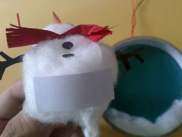 3. pegar una cinta adhesiva de doble cara a la base de su muñeco de nieve