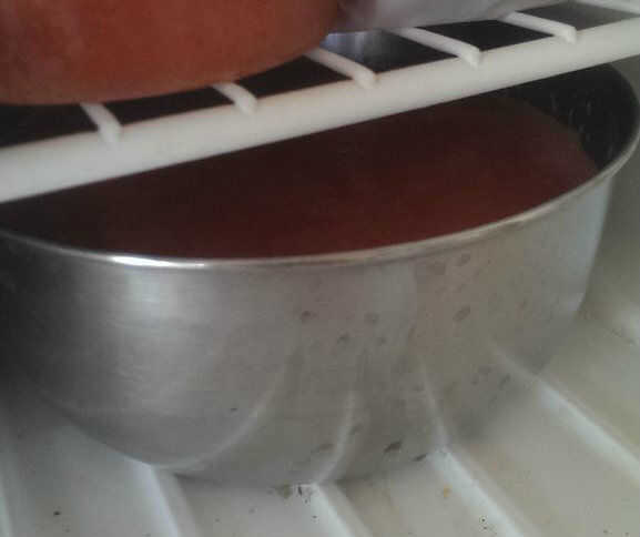 Mezcla todas las piezas hasta que no hay trozos de izquierda. Luego Vierta la mezcla en un recipiente de metal y meter en el congelador.