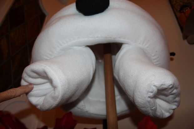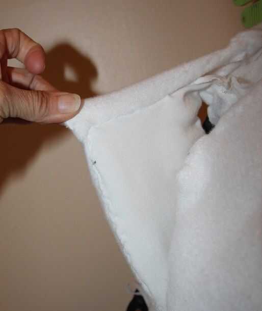 Ahora necesita cortar una abertura a través de todas las capas. En la parte posterior del traje en el borde de cuello corte una abertura en el centro de 1/2 de la manera abajo. Mano coser los bordes de la abertura. Colocar un broche de presión grande en cuello.