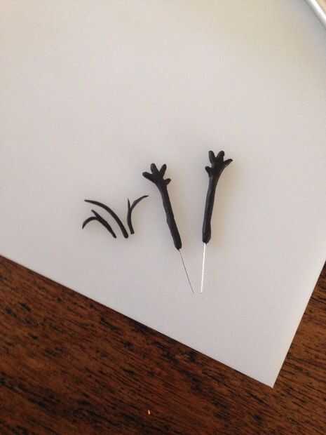 • Para los brazos: cortar su cable de calibre fino en pequeñas piezas, estirar el fondant negro en salchichas con bolas en el extremo. Pegar el alambre a través de los brazos con cuidado y utilizar el bisturí para cortar las manos (Nota: 'Dedo pulgar' de Olaf no es con el resto de la mano y un poco más en su muñeca!).