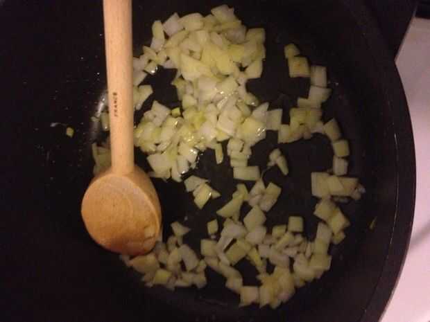 Finalmente picar la cebolla y cuando la sartén esté caliente, añadir la cebolla.