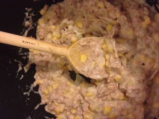 Añadir unas láminas finas y dejar derretir y mezclar con el resto de la mornay. Si es demasiado fino, puede agregar más queso.