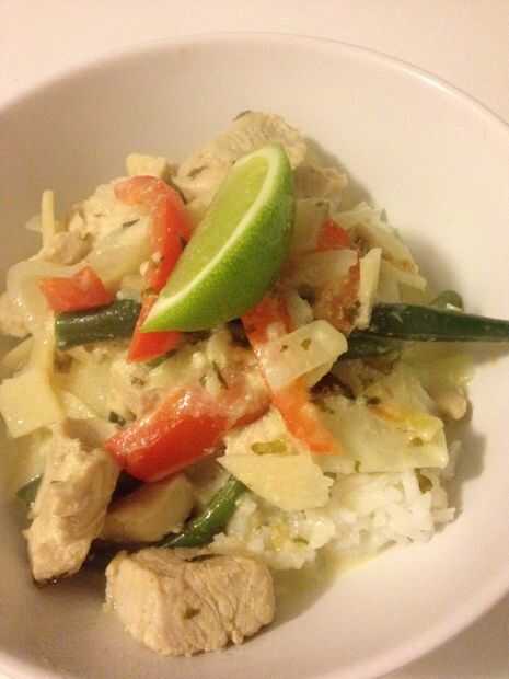 Esto es rápido, fácil y muy sabrosa. Más rápido y más barato que conseguir un punto de entrega.Vale la pena mantener la hierba de limón, hojas de Lima, y cilantro picado en su congelador - estos ingredientes realmente levantarán el sabor de un curry
