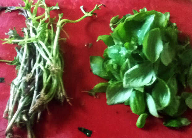 También puede blanquear la albahaca tailandesa. Es un poco más picante que la albahaca, y lo blanqueo ablandará el borde. Si te gusta el sabor, mantener crudo.