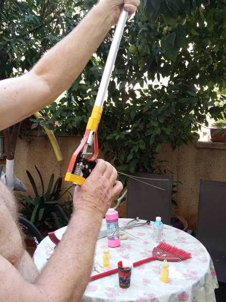 Hemos creado un palo largo con las abrazaderas en su extremo.