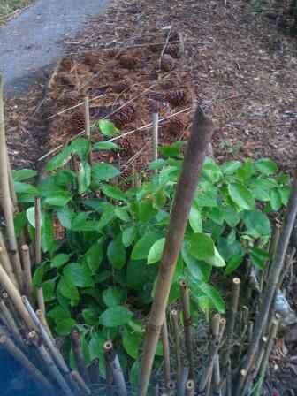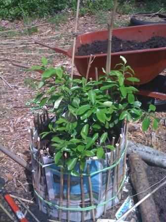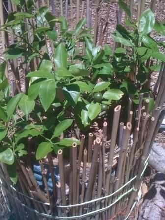 Sew a FRUIT FENCE Bag for your fruiting plant.Clip de plantadores de fruta cerca a cercas de la ciudad. Estas bolsas han sido diseñadas para apoyar plantas frutales más grandes, del tamaño de un arbusto pequeño. Un depósito interno de agua ayuda a ex