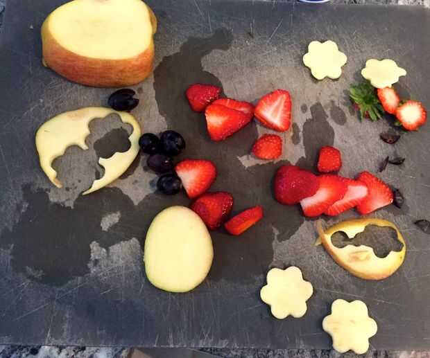 Colocar las frutas y las bayas y las hojas como lo haría en un arreglo de flores.