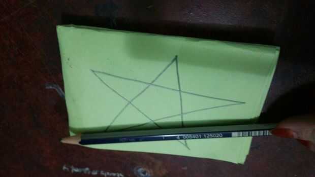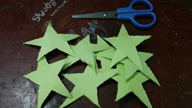 primero dobla el papel de tarjeta y dibuja una estrella en él. Entonces cortó él. Usted puede tener tantas estrellas a la vez por este truco