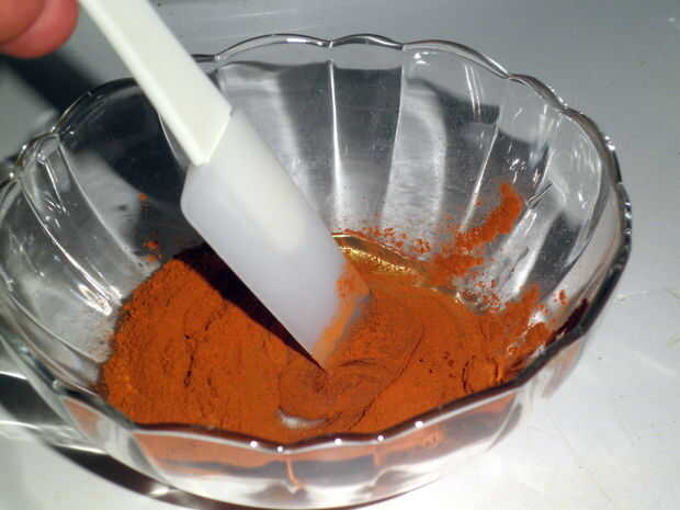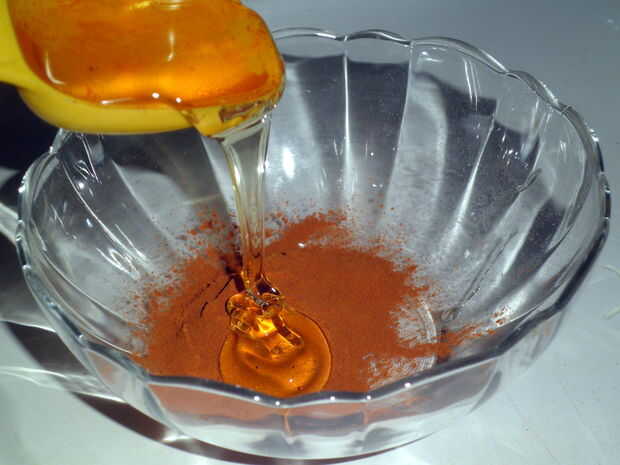 La receta original pide brandy. Decidí que quería un sabor Canelo a la mía. Hacer la pasta de 1 cucharada de canela y 1 cucharada de miel en un tazón pequeño. Mezclar bien dos.
