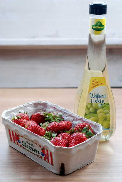 Para mantener el sabor de la fresa yo no recomiendo el vinagre de manzana para esta receta. He usado vinagre de vino blanco pero en retrospectiva un vinagre balsámico blanco podría haber sido incluso más agradable.
