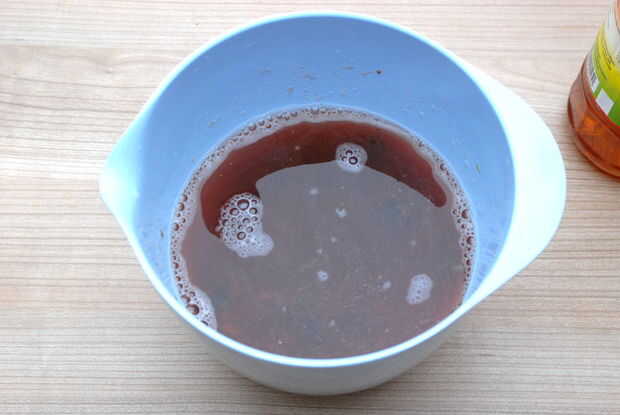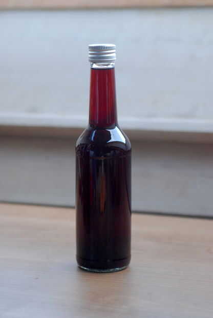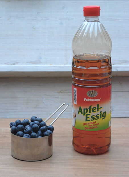 He utilizado 1 colmado taza arándanos, solía un tenedor triture. Mezclé las bayas trituradas con 2 tazas de vinagre claro applecider en un viejo tarro de masón. Yo ya deje el frasco en mi cocina y lo sacudió todos los días. Después de seis semanas he tamizado a los arándanos y filtró el vinagre a través de una malla fina en una botella.