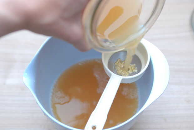 He usado vinagre de manzana sin filtrar pero retrospectivamente debo han más bien utilicé vinagre de vino blanco o vinagre otra de la brillante y clara. No me gusta la mirada turbia y creo que un vinagre más bien restringido sería un mejor ajuste.