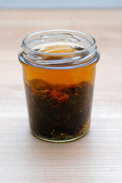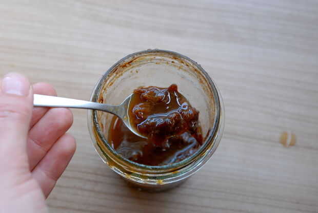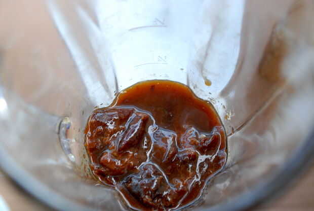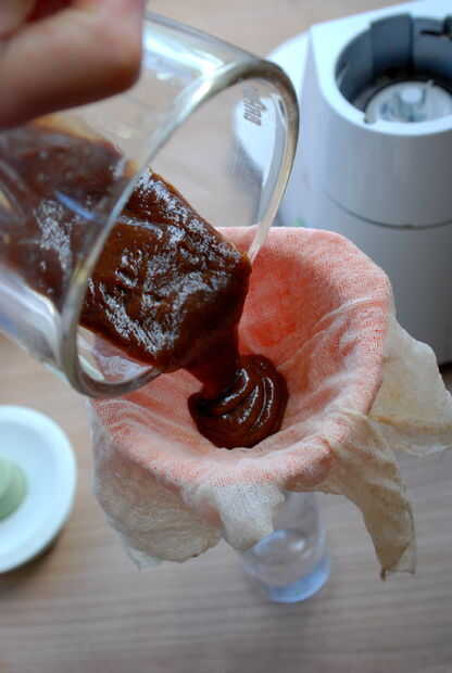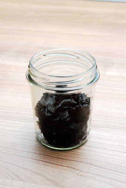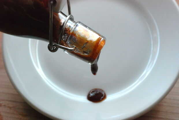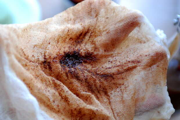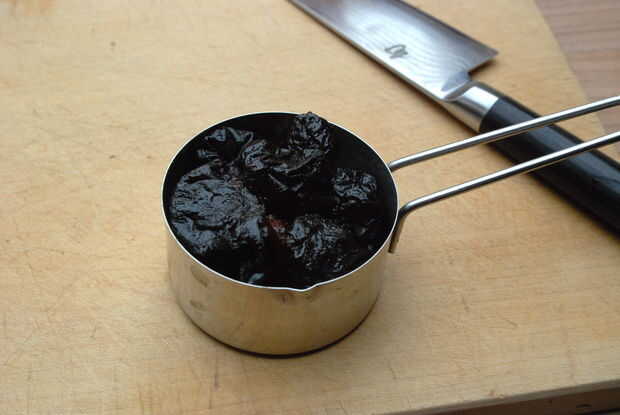 Puesto que las ciruelas se disolvieron casi totalmente durante el proceso de infusión se convirtió en imposible forzar hacia fuera. Pasa por alto este problema simplemente usando la licuadora. El resultado es una crema de vinagre viscoso.