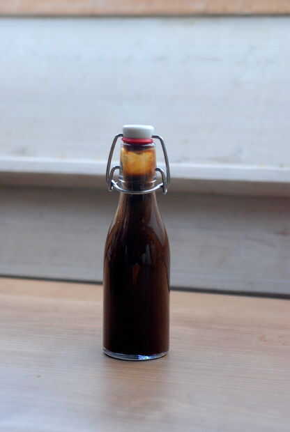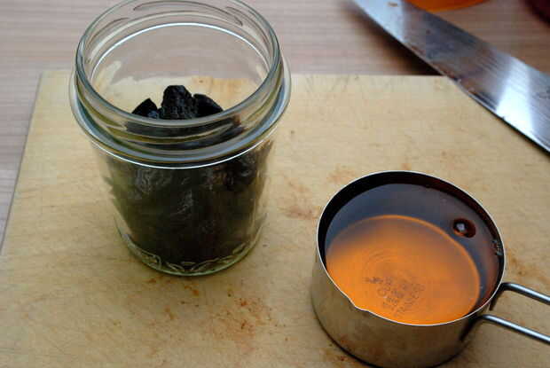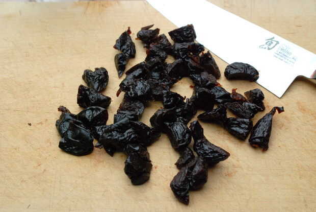 Las pasas infundidas vinagre me inspiraban a experimentar con otros frutos secos, así: para esta receta he utilizado las ciruelas pasas y yo estoy bastante salido sobre el resultado. Recuerda no sólo visualmente de vinagre balsámico - hay un agradable dulzor redondo a este vinagre. Me gusta usar cada vez que usaría generalmente vinagre balsámico.