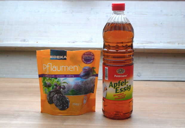 Corte 1 taza ciruelas en cuartos, mezclar en un frasco con 1,5 tazas de vinagre applecider y dejarlo a sentarse en el mostrador de la cocina y agite el frasco cada dos días. Después de cuatro semanas puede usar una licuadora para mezclar la mezcla. Si usted no tiene una licuadora de alta velocidad puede utilizar una cuatro veces doblada estopilla filtrar hacia fuera la mayor poda pedazos de la piel. Llene el crema de vinagre en una botella.