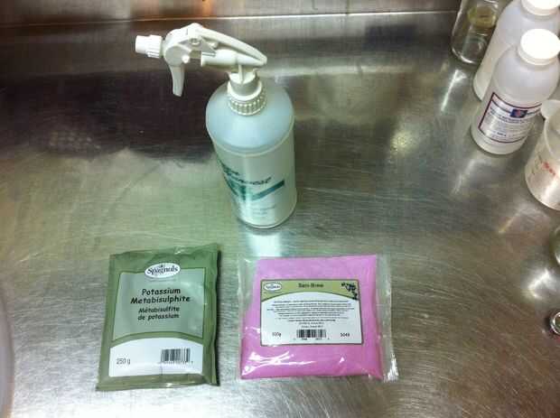 Metabisulfito de potasio (KMS) es un desinfectante (no para la cerveza). Todos los equipos se deben rociar con una solución de sulfito antes de su uso, para neutralizar cualquier residuo de cerveza Sani y para desinfectar. No enjuague a menos que utilizando agua filtrada y sientes la necesidad.