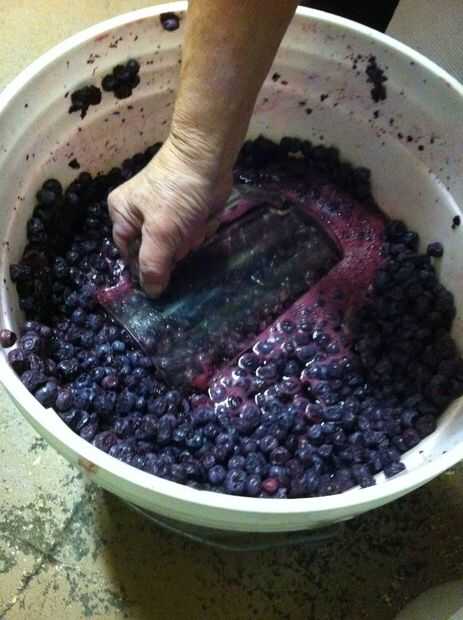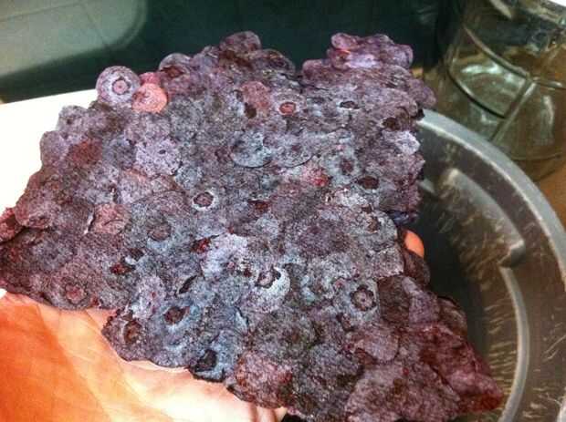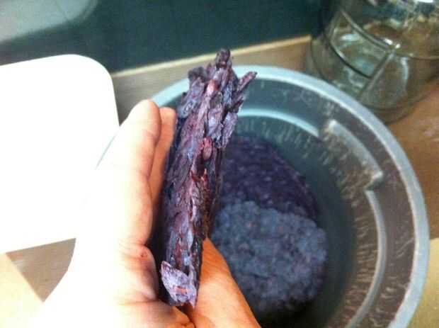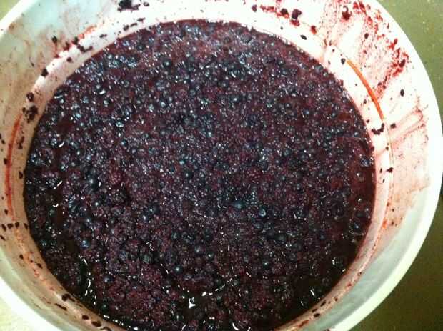 2 fotos de lo que queda de los arándanos después de presionar y uno de bayas mixtas.