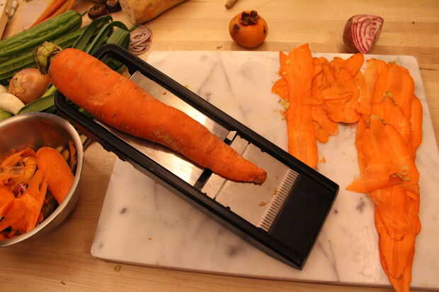 Para cortar las frutas y verduras utilizan una mandolina o en rodajas con un cuchillo afilado dependiendo de los alimentos. Por ejemplo sandía, kiwi y tomates se realizan mejor con un cuchillo.