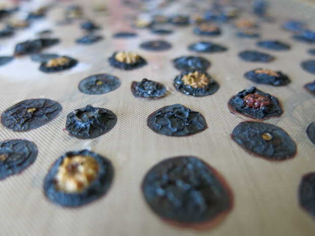 El objetivo es deshidratar hasta mayormente seco pero no crujiente.