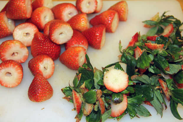 Fruta fresca - utilicé fresas, lavar y cortar las tapas
