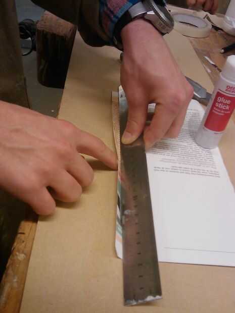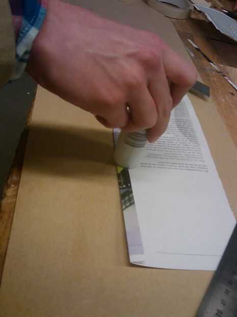 Romper una página de una revista. Corte una hoja de papel de unos 3 centímetros. Doblar la hoja de papel tres veces para que obtener un papelito doblado de papel de 1 centímetro. Desdoble la hoja de papel y poner pegamento en el medio y doblar otra vez. Repita este proceso hasta que tengas una cantidad razonable de pedazos de papel.