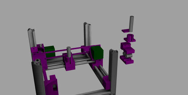 En relación con el eje Z, en lugar de utilizar un cinturón para movimiento decidí utilizar un tornillo con una tuerca. Este tipo de mecanismo es caro pero permite mover el plano en el eje vertical, lo que reduce la fricción y juegos. Las dos barras verticales son grandes, pero es necesario si usted quiere tener un eje sólido.