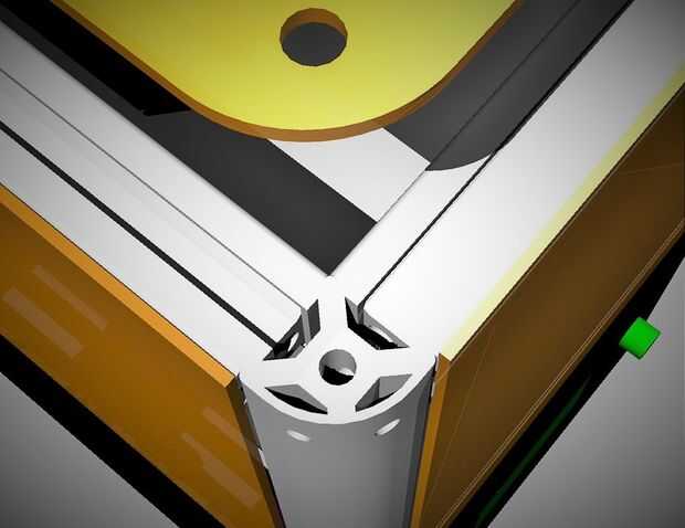 Para montar los 4 cuadrados de 30 x 30 secciones para los bordes te debe hacer 4 agujeros en las secciones redondeadas. Los agujeros tienen que ser 15mm lejos superior e inferior y deben pasar en medio de la cavidad central de las secciones, donde la cabeza del tornillo tiene que ser. Cada borde se fija en la jamba con un M8 perno redondeado y el agujero es donde pasa la llave allen para apretar el perno.