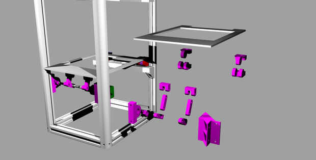 La estructura se basa en las secciones de aluminio extruido de 30mm de lateral, que se montan las barras en el que Deslice los vagones para el movimiento del láser, la compatibilidad de la tina y el eje Z.