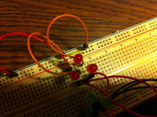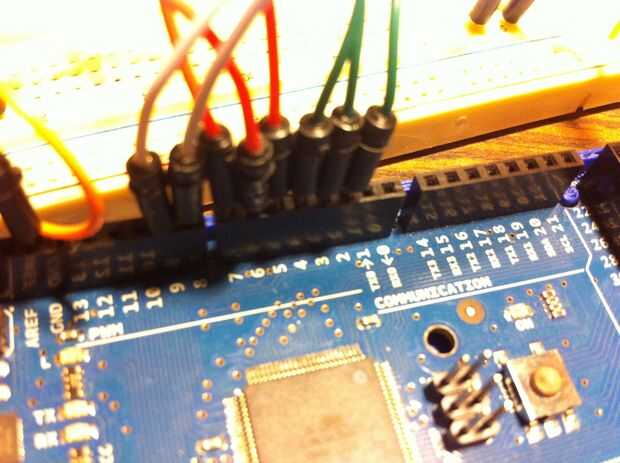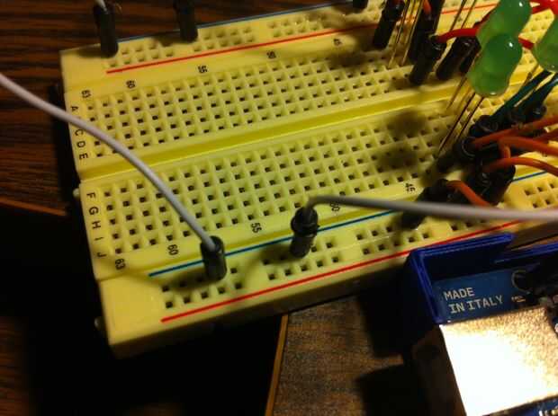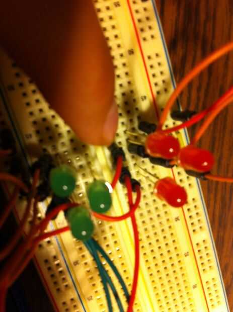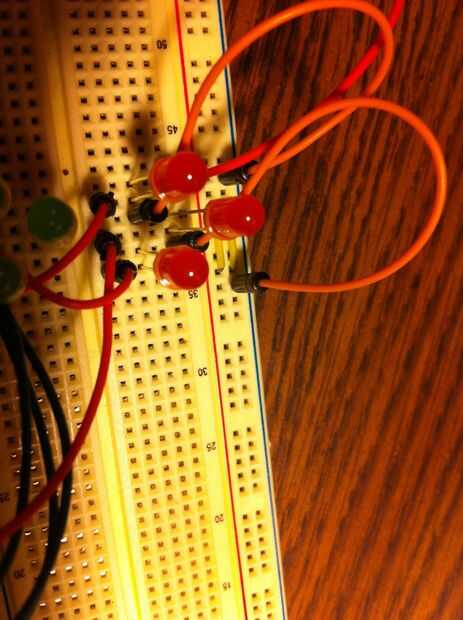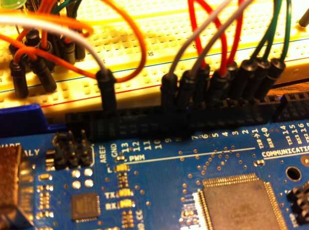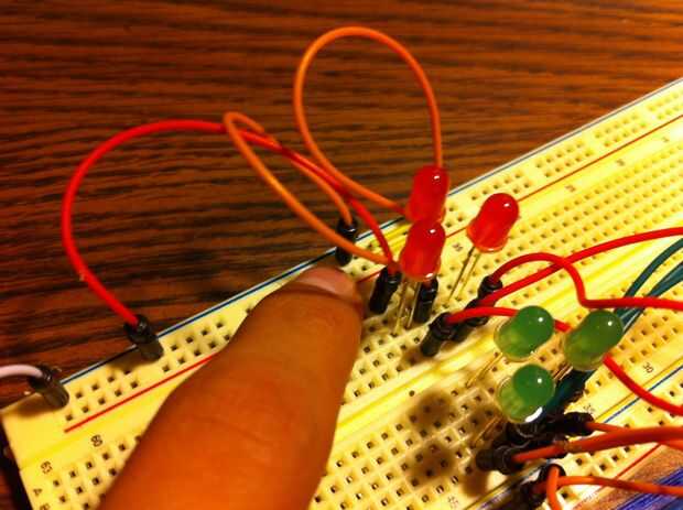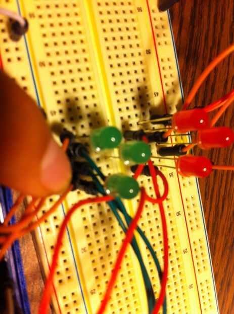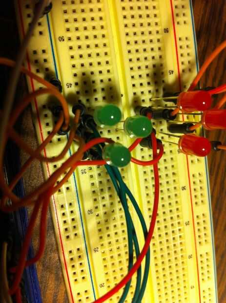 Eld 3 poner rojo en un triángulo y el verde para el poner un cable a la entrada del pin grande o de la eld hacer esto para los seis y luego conecte el cable verde a los pines de los arduino bord pines 2,3,4 entonces el cable rojo a los pines 5.6.7 entonces en el arduino buscar tierra y poner un cable en él una gestión a la Junta de pan entonces obtener seis alambre y conectarlos a la pernos de la eld que quedan corta t