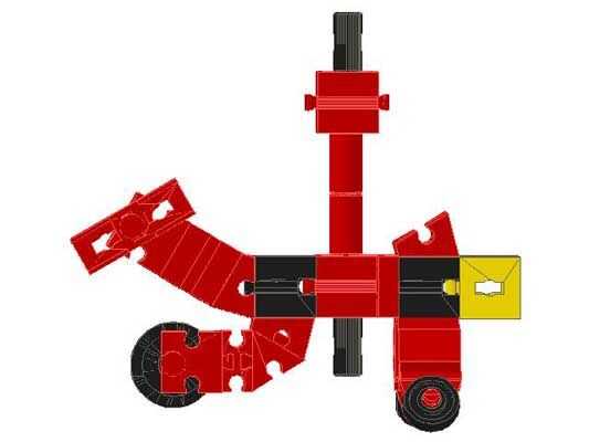 Comenzar el montaje del rotor principal mediante la fijación de un eje de acoplamiento hasta el final de un Clip eje 75 e inserte el eje por la parte inferior del bloque 15 con agujero. Añadir (en orden) 15s manga dos, luego un bloque de construcción 15 con agujero y fijar el extremo del eje con un segundo eje de acoplamiento.