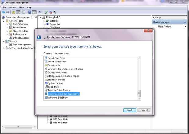 usted debe actualizar Software de controlador > buscar mi computadora para el software de controlador > me deja elegir de la lista... y elija controladores de Bus serie Universal.
