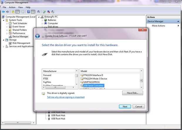 Haga clic en y usted debe elegir FTDI > convertidor Serial USB, instalar o dar acabado