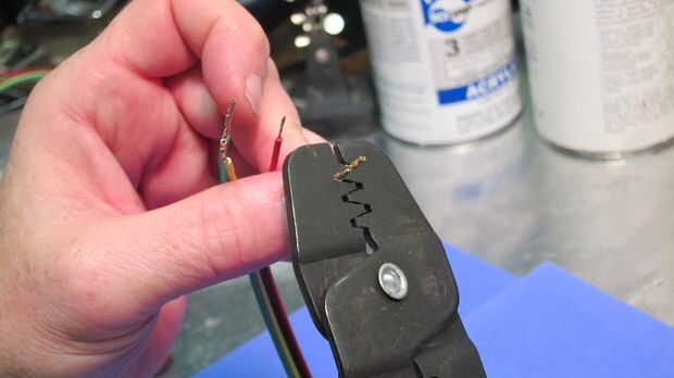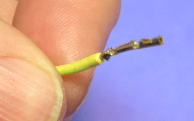 * Las pestañas triangulares están diseñadas para ser prensado alrededor del aislamiento del cable. Sin embargo, si haces eso con los cables de AndyMark entonces no encajan dentro de la vivienda. Así, en lugar de la encrespadura les alrededor del alambre estañado expuesto.