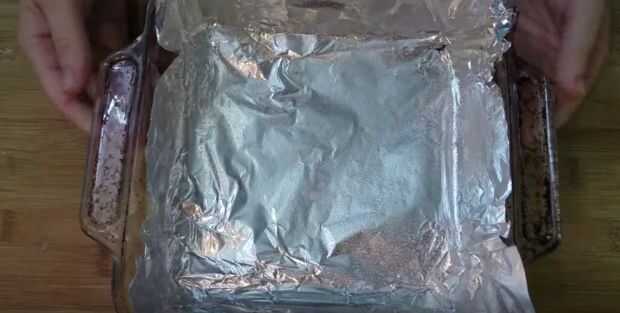 Línea una cacerola de 9 "x 9" con el papel de papel o pergamino y niebla. con aerosol de cocina