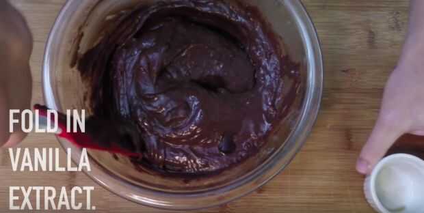Doblez de vainilla en el chocolate derretido hasta combinado.