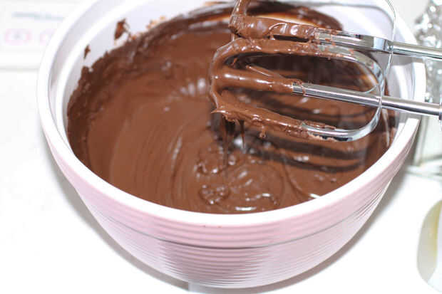 Usando la batidora eléctrica batir la mezcla de dulce de chocolate para un par de minutos a baja velocidad. Se debe derretir el chocolate.