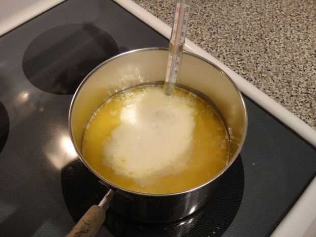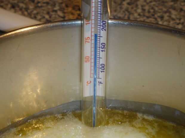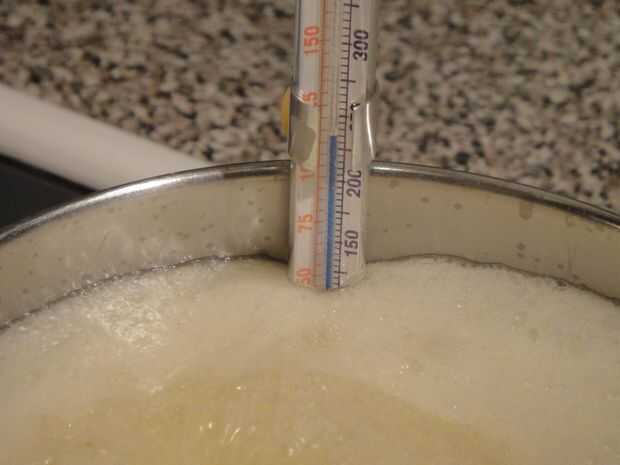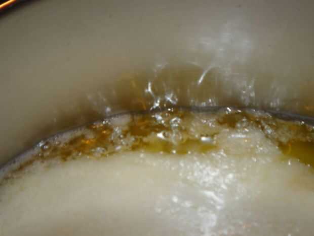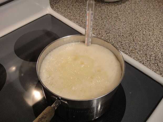 Las fotos muestran como se verá el fudge como calienta hacia 249 grados.  Tenga en cuenta que la pared de la cacerola esté limpia, no cristales de azúcar.