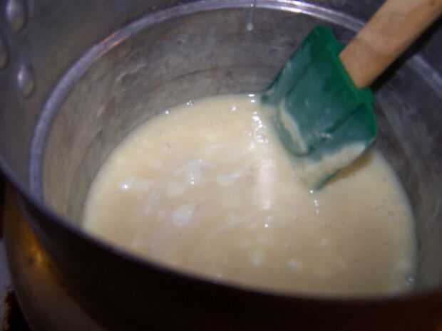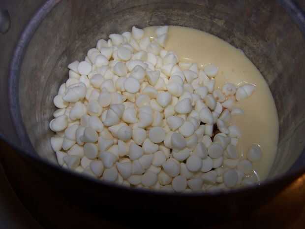 Revuelva ocasionalmente hasta que los trocitos se derritan y la mezcla esté suave.