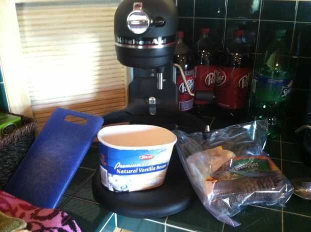 1. Keebler saltamontes 2. Helado de vainilla 3. Mezclador. 4. Ice cream scoop 5. Tabla de cortar. Lo siento por no hacer una lista, no sé cómo.