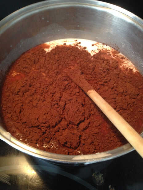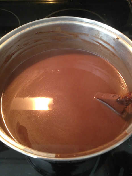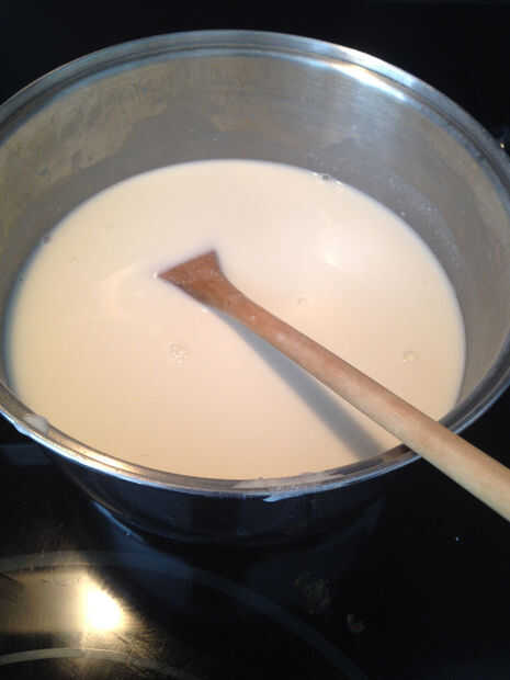 Verter en el resto de la leche y otros ingredientes, hierva y hasta que todo disuelto y algo espesa.
