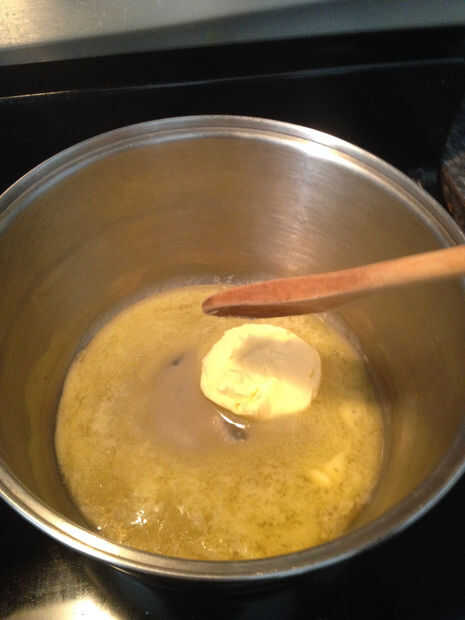 Derrita la mantequilla en temperatura alta, bajar la temperatura a media, añadir harina poco a poco, alternando con una taza de leche, revolver hasta que esté suave.
