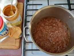 Instrucciones: Derrita la mantequilla en una cacerola mediana sobre fuego medio. Agregue el azúcar morena y leche. Llevar a ebullición y hervir durante 2 minutos, revolviendo frecuentemente. Retirar del fuego. Agregue mantequilla de maní y vainilla. Verter sobre el azúcar en un tazón grande. Batir hasta que esté suave; Vierta en un plato de 8 x 8 pulgadas. Enfriar hasta que esté firme y cortar en cuadrados.