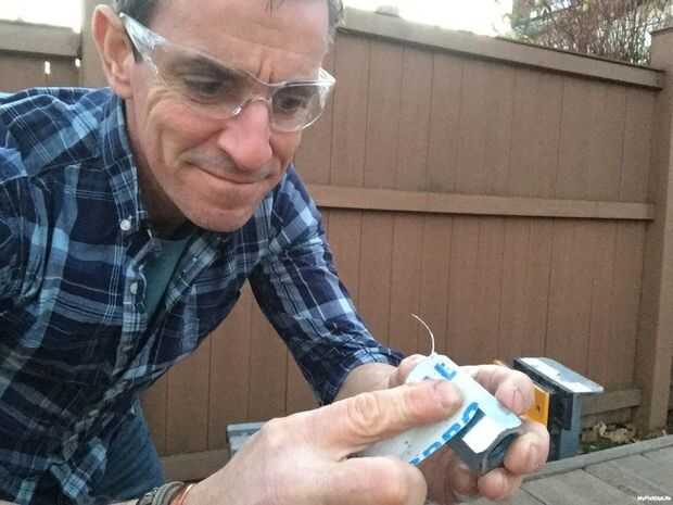 Deje enfriar el conexiones, luego conecte la pieza inferior a la parte inferior de las zapatas de esencialmente la misma forma (desgastar, flujo, calor, soldadura). Y Pele las etiquetas engomadas. Probablemente debería haber hecho esto primero. Usé mi pelador de Hyde, que sigo con mis cosas de panel de yeso y pintura, actividades donde parece que la eliminación de la etiqueta es una cosa.