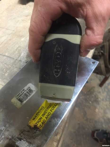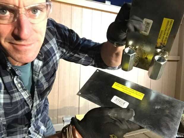 Orientar el delantero vertical (uno que va en la pared) por lo que los orificios de tornillo en la parte superior. Desgastar el acero con papel de lija de óxido de aluminio en la parte inferior donde van los acoplamientos.