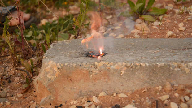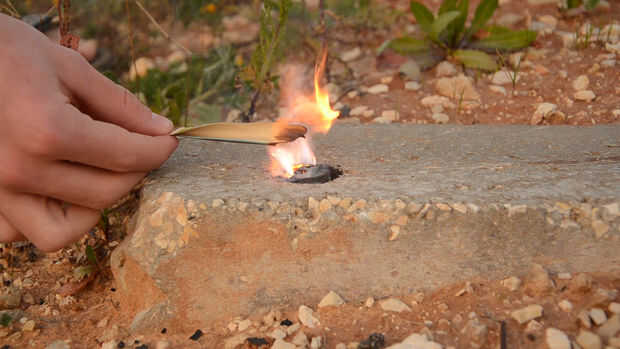 Verter algunos Kali en la superficie donde quieres que inicie el fuego. Haga un pequeño hueco en la pila de Kali. Ahora vierta unas gotas de glicerina en la brecha que creó y prepárese usted Yesca porque esta pila está a punto de incendiarse. Cuando vea que la reacción se inicia y hay humo Prepárate, en cuestión de segundos que aparecerá una llama y que es a la vez que cubra su yesca y comenzar el fuego.