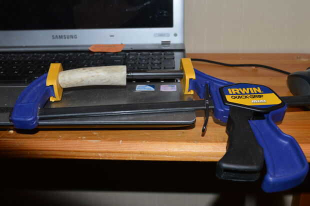 Coloca la varilla en el agujero, había limpiado de cualquier exceso de pegamento, había fijada en un agarre y deja que se seque durante unas horas.