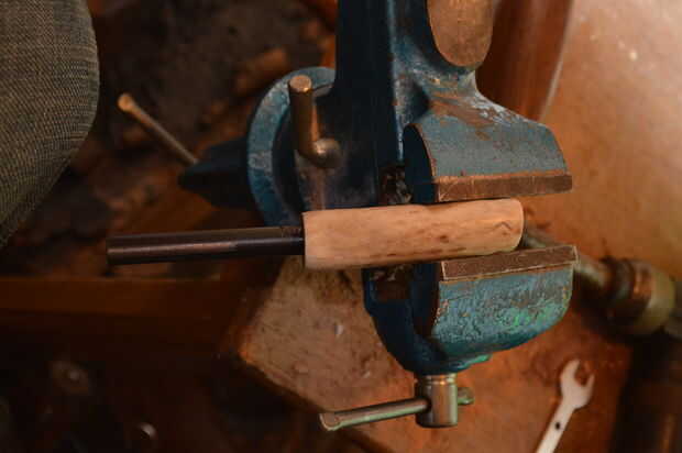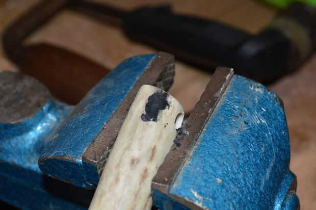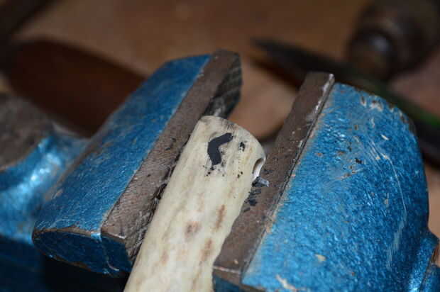 Con un fino grabado filo de la broca en la dremel grabado cuidadosamente la runa en la cornamenta.